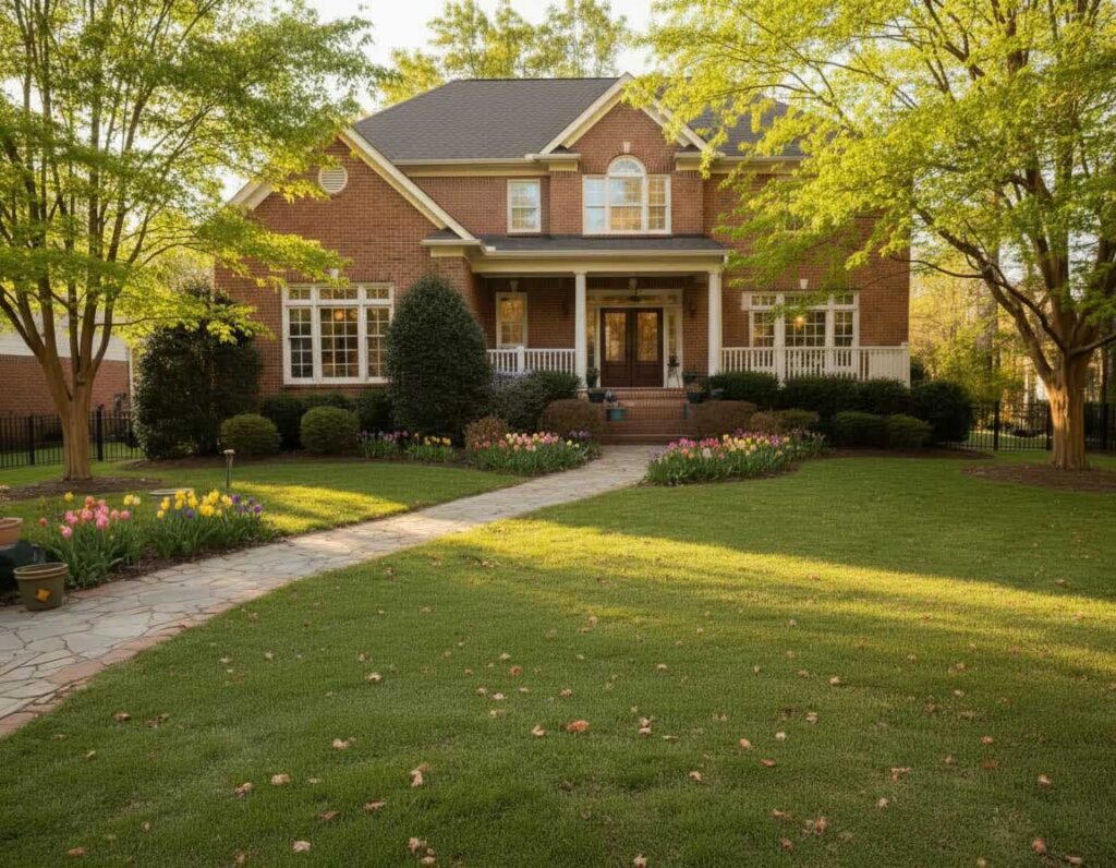 Favorites include daffodils, tulips, hellebores, and azaleas, which pair beautifully with fresh green foliage. We often layer these with flowering trees like redbuds or dogwoods for vertical interest.